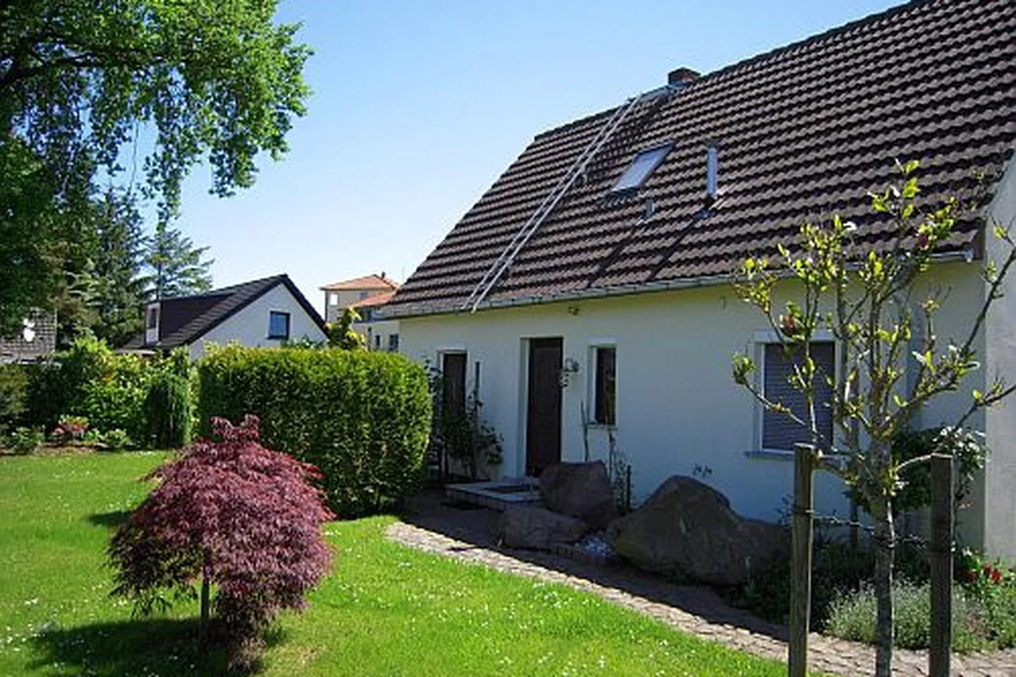 Der gepflegte Garten bietet eine geschützte Rückzugsmöglichkeit im Freien.