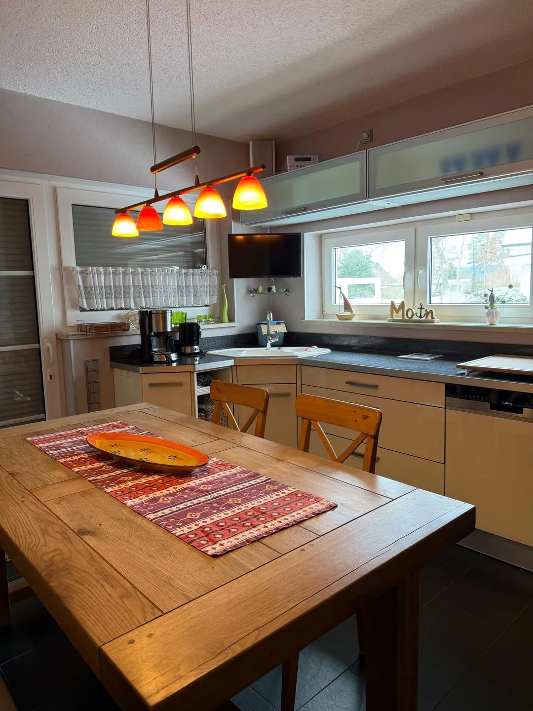 Das Haus selbst überzeugt durch eine durchdachte Raumaufteilung und eine angenehme Wohnatmosphäre. Die voll ausgestattete Küche bietet ausreichend Platz zur Zubereitung gemeinsamer Mahlzeiten. Das Wohnzimmer lädt für gemeinsame Abende ein.